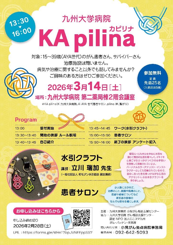 【開催済み】【3月14日】九州大学病院 AYA世代患者サロン KA pilina(カピリナ)のご案内